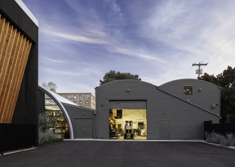 The original warehouses, built for the Titan Metal Products Corp in the 1940s, provided a durable structure but required extensive reprogramming for a modern office. Skylab retained key industrial elements—exposed steel arches, aluminum windows, and concrete floors—and complemented them with modern insertions. Large operable glazing walls and a 60-foot central skylight flood the interiors with daylight, improving energy efficiency and creating strong visual connections to the surrounding landscape.