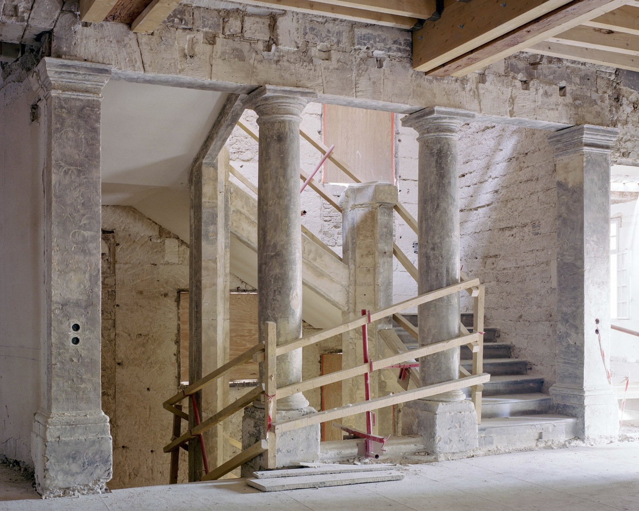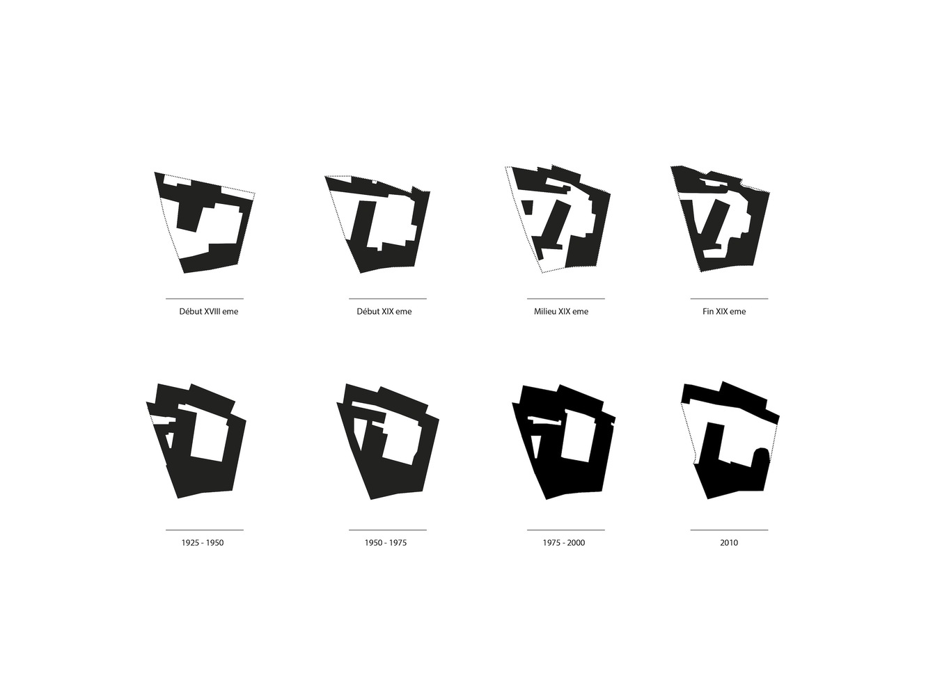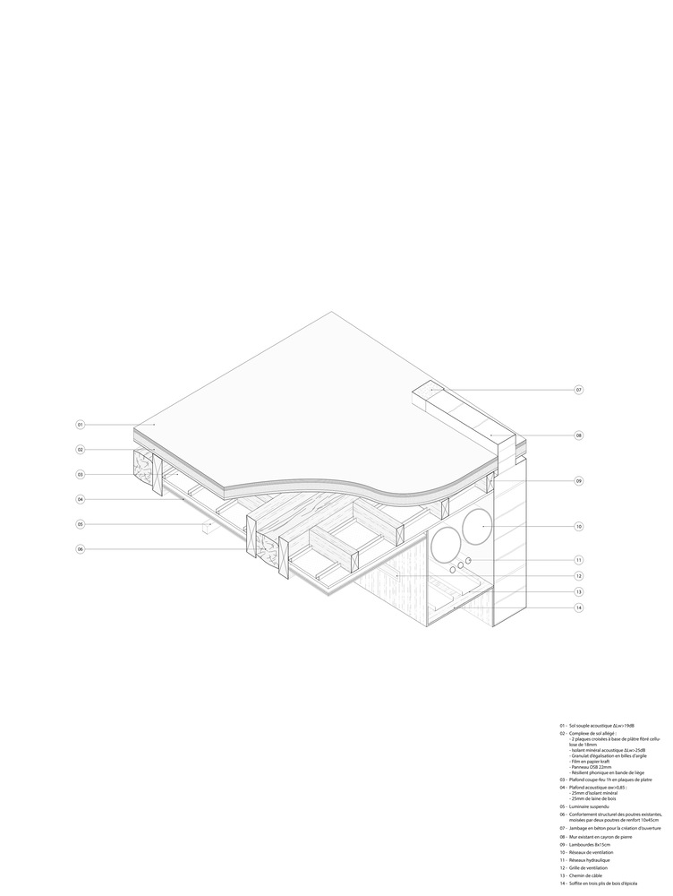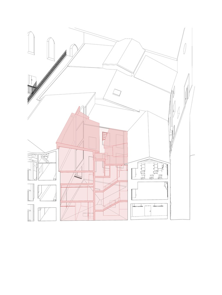 Key historical transitions were interpreted through three monumental vertical openings. Each void narrates a different chapter in the building’s evolution—from the 1792 sale of the convent during the French Revolution to the 1857 connection of structural elements. These voids serve both symbolic and practical roles, providing light, access, and contextual insight into the structure’s transformation over centuries.