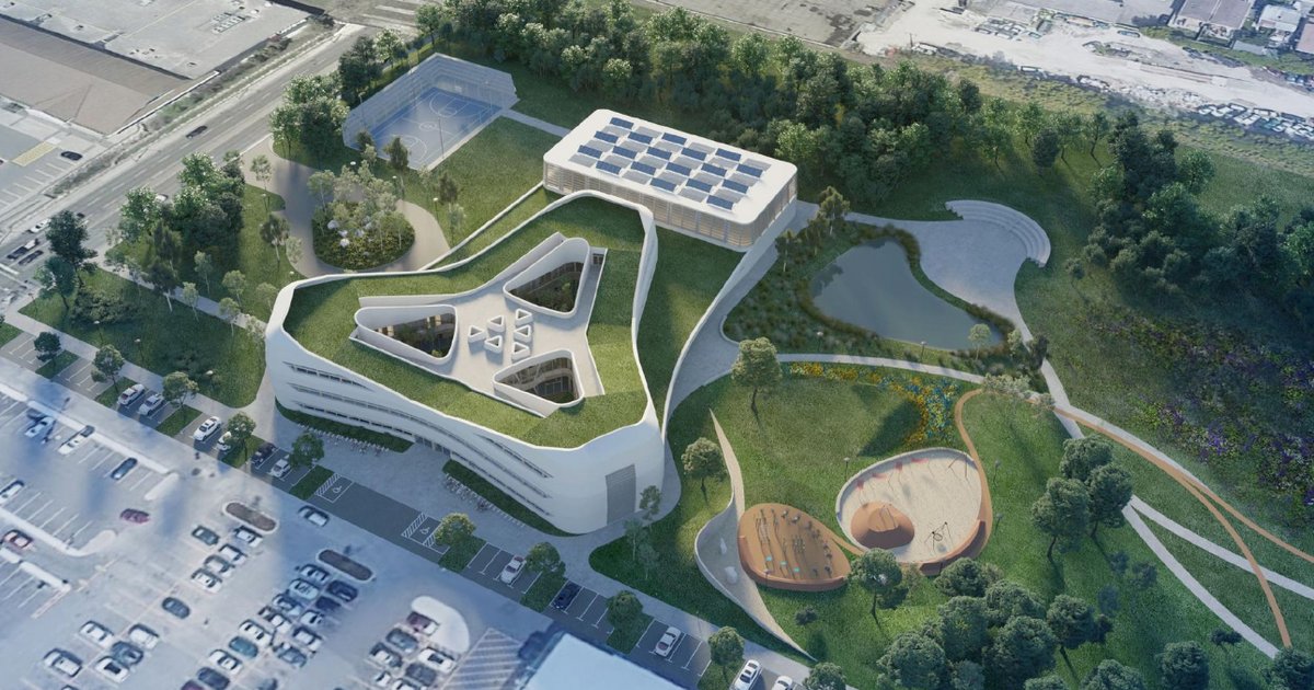 Description: The project aims to develop the idea of sustainable and innovative classes by involving the nature in the design of the classes that can help developing the area. The project can be a starting point developing a special character to the area by using the natural element that already exists and the school name is emphasizing the existence of the nature.
