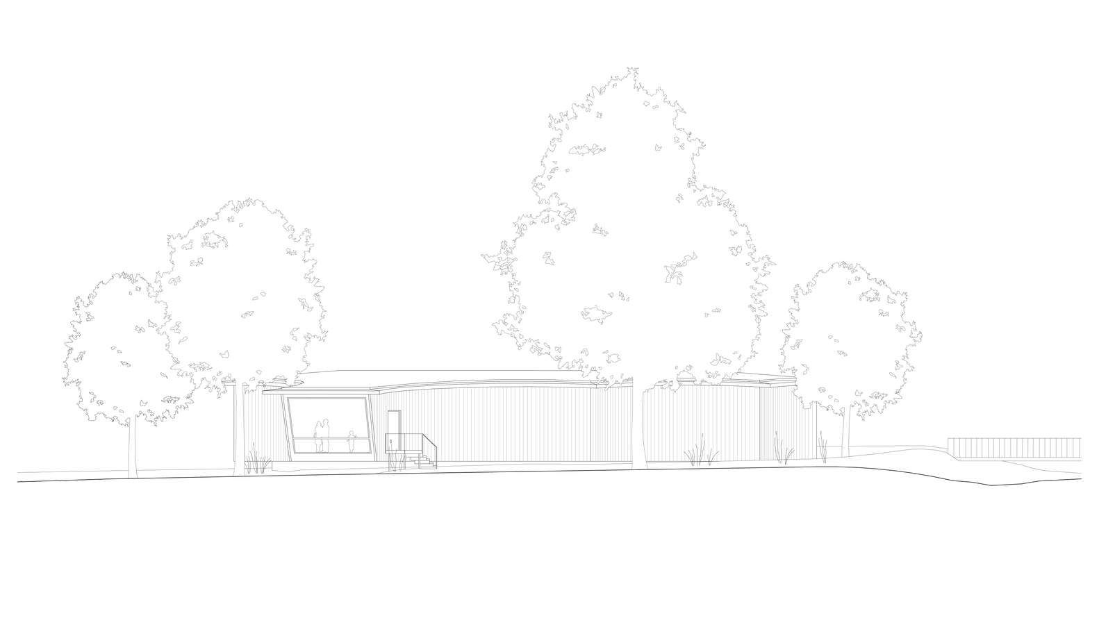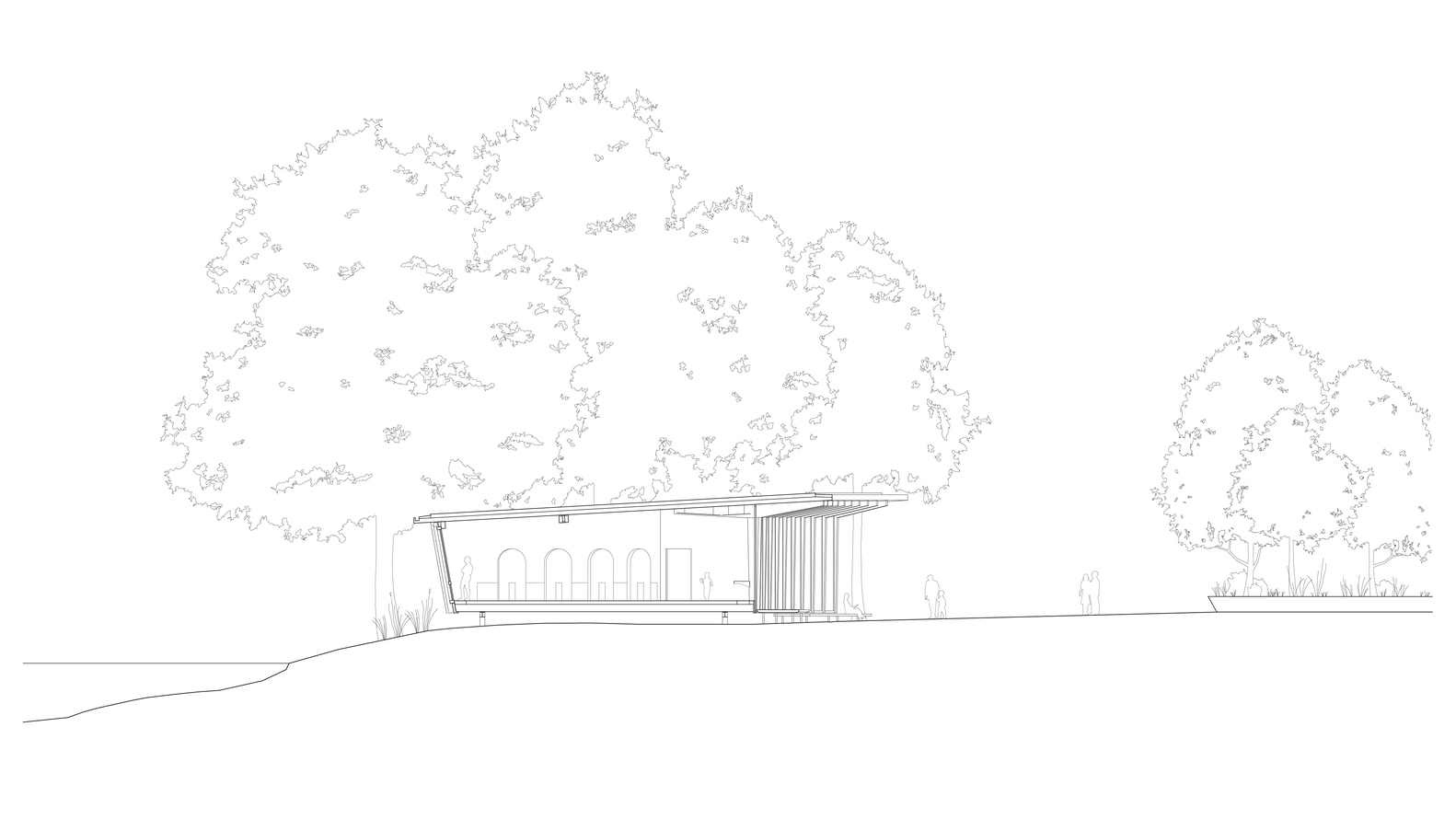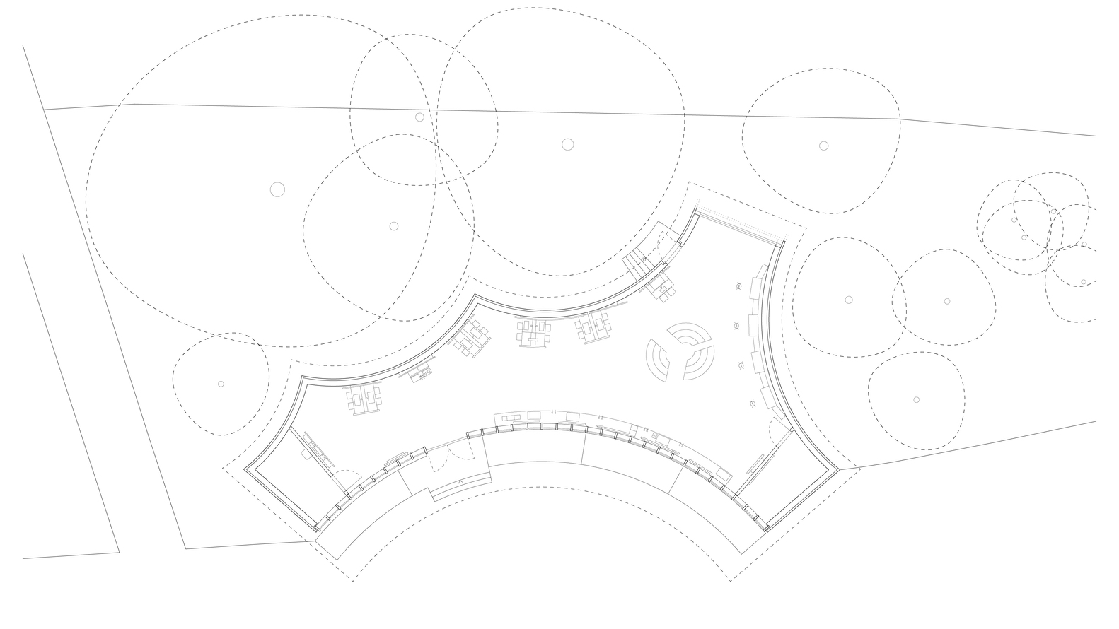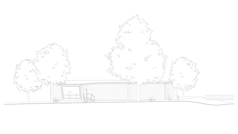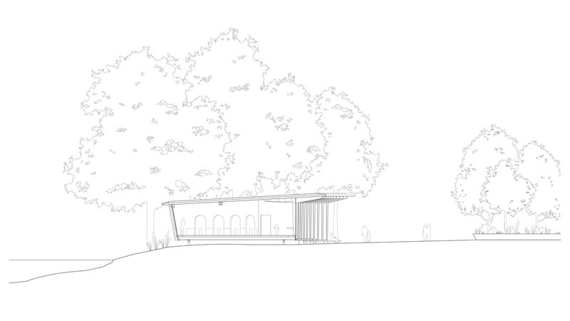 Located on Heilbronn's Kraneninsel, the AI Pavilion completes the urban composition defined by the Hagenbucher warehouse, the Experimenta extension, and the Neckar riverbank. The curved façade elegantly closes the west side of Experimenta square, creating a seamless dialogue between the natural and built environment. Under a light canopy, stepped platforms invite visitors to gather, making the building a contemporary reinterpretation of the ancient 'stoa' — a place of knowledge exchange and social interaction.