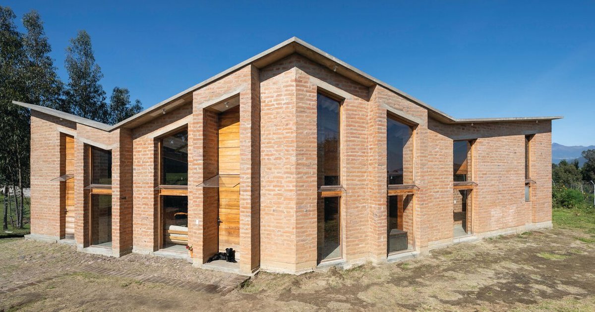 Compact brick house in Ecuador blending landscape-inspired design, passive climate response, warm materials, and rural living transition.