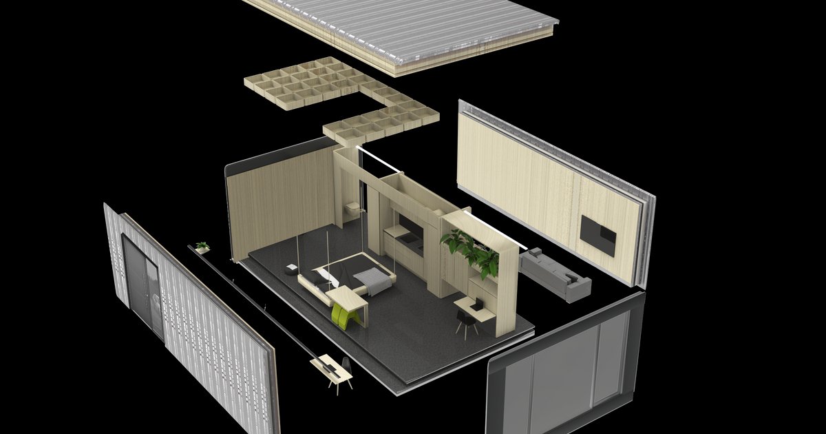 MATERIALS AND ECOLOGY are important parts of the concept. The outside of the capsules is a wood stud construction with metal cladding which allows to completely disassemble them if necessary. Natural materials like wood also make the interior design more welcoming and healthy. Fractal patterns and terrazzo surfaces try to make the room look bigger than it is. Plants are implemented because they play an important role in the inhabitants' well-being.