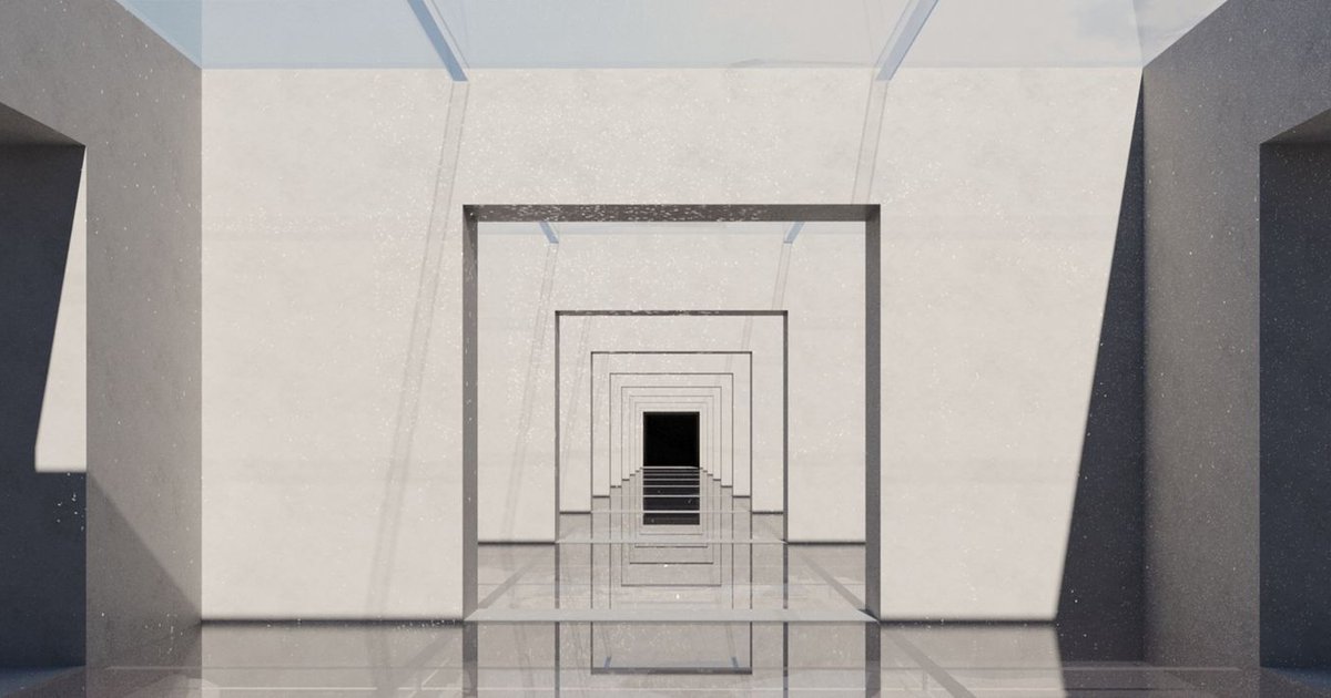 Visitors are immersed in an architecture that constantly dissolves the distinction between real and virtual worlds. Light refracts through water, forming moving patterns that reflect onto the walls and floors. Hallways appear infinite due to mirrored surfaces and the grid layout. Holographic projections rise from the sea, giving the illusion of ancient structures materializing above the waterline.