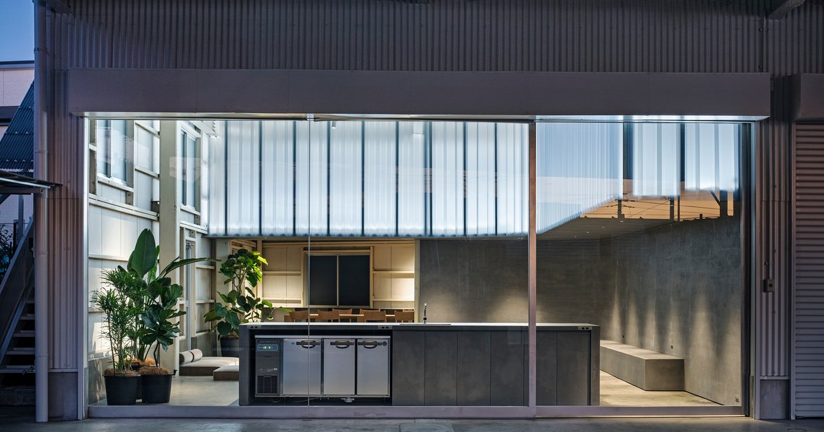 Minimalist office space in Shizuoka blending flexible design, natural light, and community connection through layered volumes and adaptive openness.
