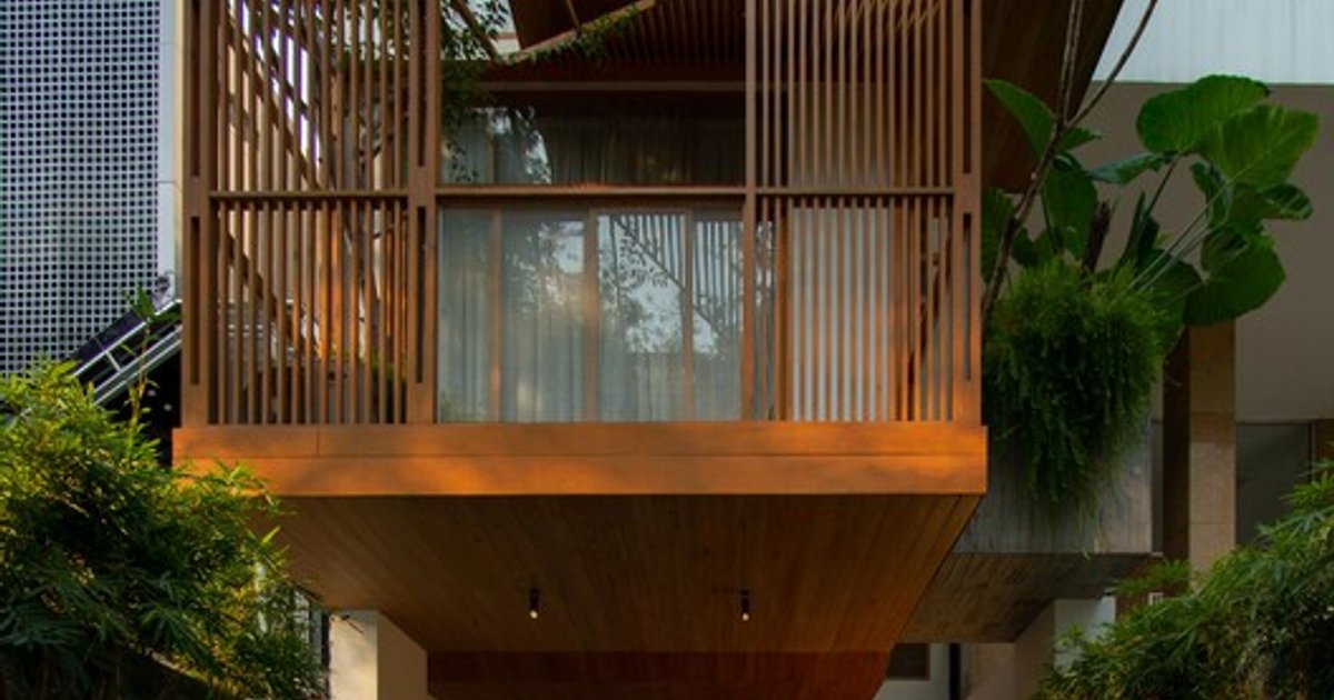The façade integrates wooden slats and greenery that filter dust, reduce street noise, and shield the building from direct western sunlight. This passive design strategy provides thermal comfort, reduces energy consumption, and enhances privacy while maintaining visual interaction with the lush tree canopy and the nearby Independence Palace gardens.