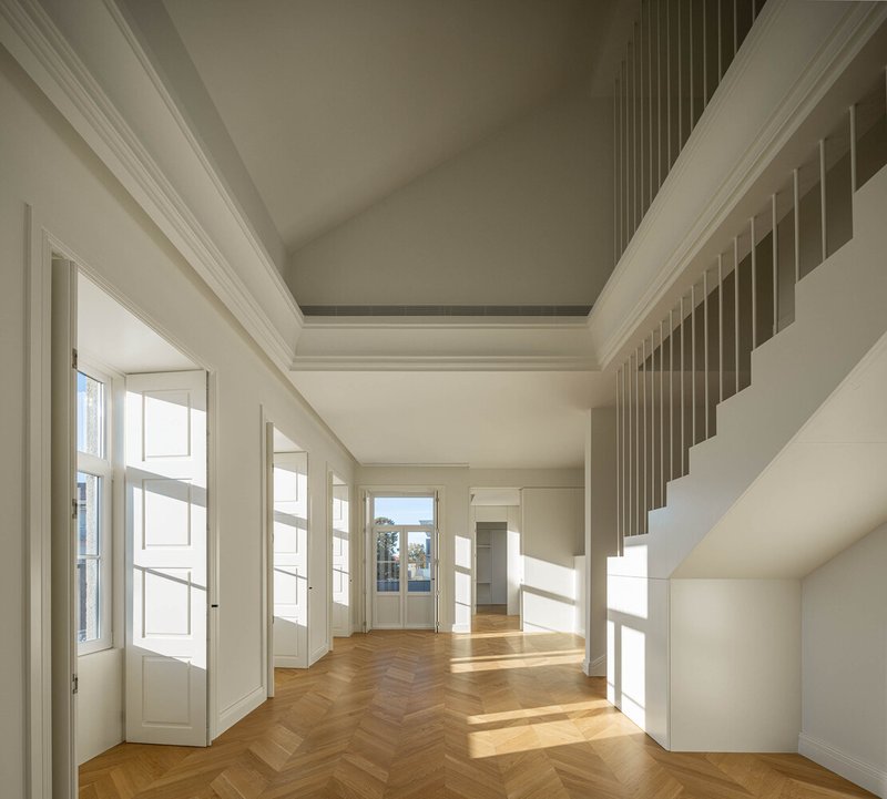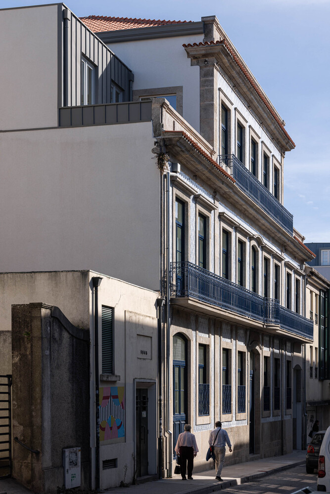 The project carefully maintains the integrity of the Rua de Adolfo Casais Monteiro façade. The number of original floors facing the street was preserved, while all historical granite elements, ironwork, and ceramic tiles—some of Porto’s oldest—were restored. These heritage tiles are even referenced in Ana Margarida Portela Domingues' doctoral research on Romanticism-era ceramic ornamentation in Portugal, highlighting the cultural value integrated into the design.