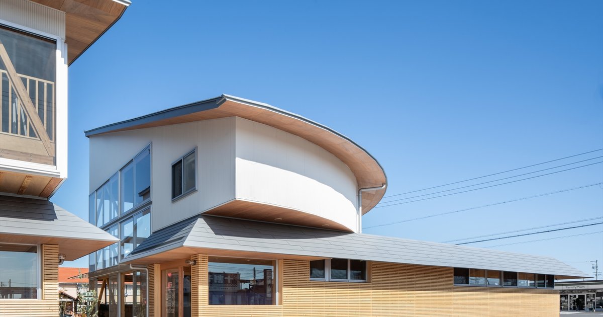 A warm, wood-centered clinic featuring sunoko façades, exposed rafters, and light-filled interiors, creating a calm, unified healthcare environment in Owariasahi.