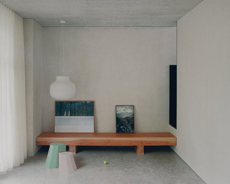 Drawing from the spatial philosophies of Adolf Loos, the architects organize the home as a sequence of interconnected rooms that vary in ceiling height and functional intensity. These volumes wrap around a central concrete core, functioning as the spatial anchor of the project.