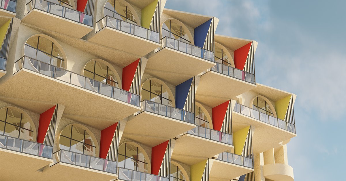 The Atomique's design also incorporates elements of a Post-Dystopian and Pseudo Brutalist aesthetic characterized by a rough, industrial look that is often associated with a more resilient and dystopian future. It typically includes elements such as exposed concrete, metal, and industrial materials, as well as a sense of decay or abandonment. In the Atomique, this aesthetic is achieved through the use of raw, unfinished concrete with a pop of color in the modular units, as well as the industrial-inspired frame that holds them together. The rough, unfinished look of the concrete is intended to evoke a sense of resilience and strength, while the industrial frame adds a futuristic touch. This aesthetic of the Atomique is not just a stylistic choice, however. It also reflects the practical and functional nature of the design, which is meant to be durable and easy to maintain in the face of potential challenges or disasters. The rough, unfinished look of the concrete is easy to repair and maintain, while the industrial frame is strong and resilient. The Atomique is designed to be a practical and functional living space that is well-suited to the demands of urban life while also offering a unique and visually striking aesthetic that is both modern and rugged.