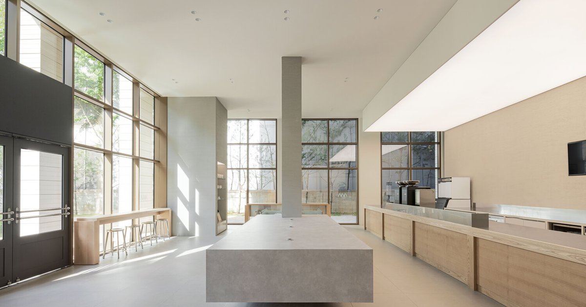 The architects—Jinsoo Kim, Suji Kim, Eunbyeol Jo, and Honggyu Park—set out to create a calm, naturally immersive space that preserves Avant Bakery’s recognizable brand language while distinguishing the Gasan branch through careful use of materials, lighting, and spatial programming.