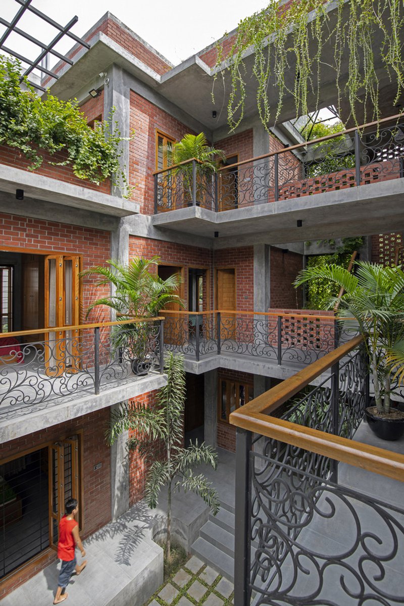 One of the key features of the design is the central courtyard, which serves as a visual and physical link between the various parts of the building. Surrounding this courtyard are balconies and circulation pathways that offer access to the exterior, blurring the boundaries between indoor and outdoor living spaces.