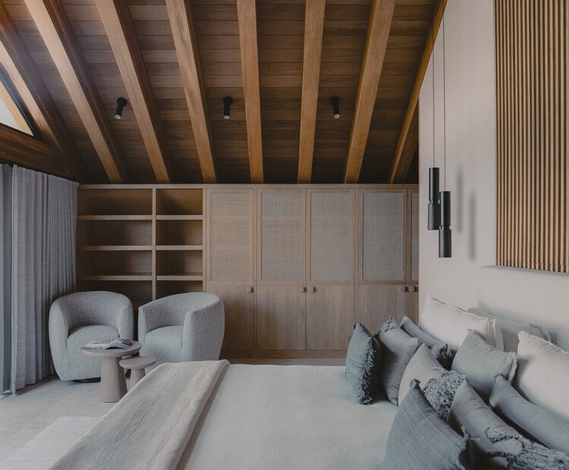 Under the direction of Adriana Olmedo, in collaboration with the homeowners, the interiors were crafted using a restrained, natural palette. Locally sourced cantera stone, wood, and marble come together to form an atmosphere of warmth and permanence, while ensuring thermal comfort in the coastal climate. Bespoke furniture pieces were designed to enhance spatial unity and reflect the home’s quiet sophistication.