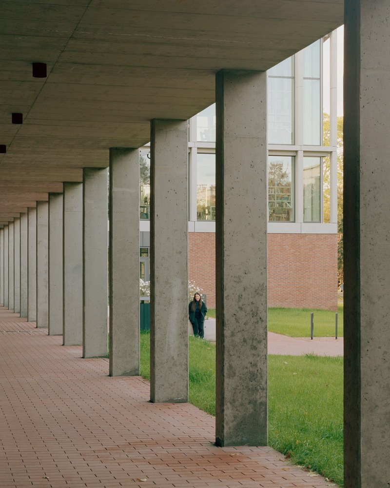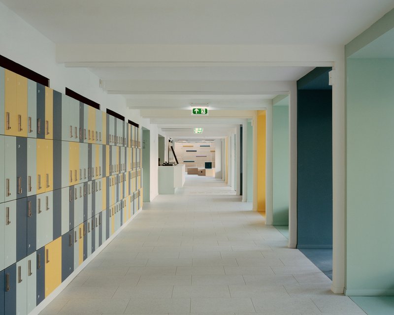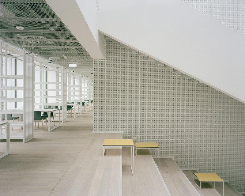 Situated in a residential and educational zone characterized by post-war buildings amidst an urban park atmosphere, the design respects the site's late modernist heritage while addressing contemporary functional requirements. The strategic addition of a new library and student center serves as a central community point, integrating educational and leisure activities.