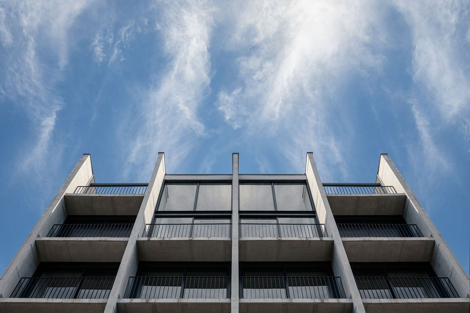 A hallmark of the project is its use of exposed concrete, chosen for its neutral aesthetic and respect for the historic surroundings. The brutalist character of the material lends a strong, distinctive identity to the building, highlighting the architecture’s modern yet timeless presence.