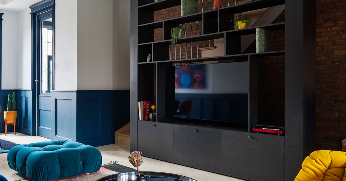 A vibrant Brooklyn townhouse renovation blending historic charm with bold colors, custom details, and modern artistry by Olbos Studio.