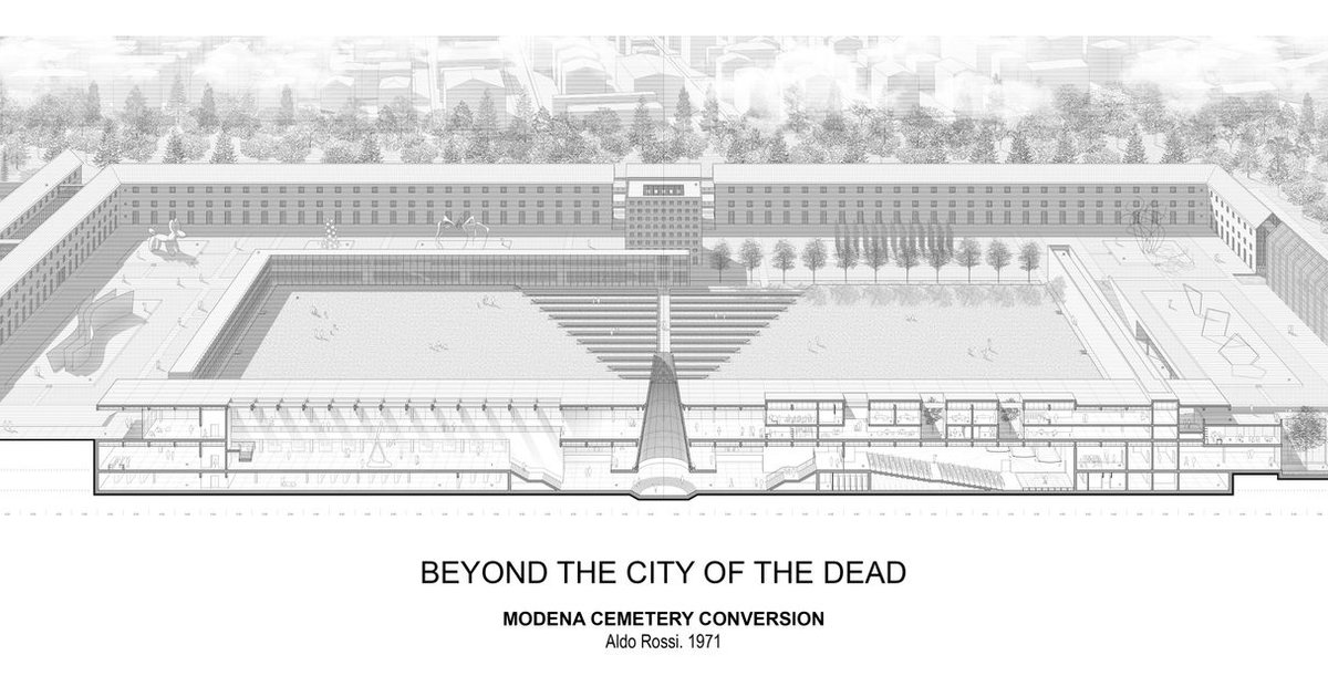The Cemetery of Modena "BEYOND THE CITY OF THE DEAD Aldo Rossi Modena Cemetery Conversion", designed by Aldo Rossi with Gianni Braghieri, stands as one of the most influential works of Italian architecture of the last fifty years. Conceived in 1971 as an extension of the existing San Cataldo Cemetery, the project is celebrated for its radical clarity, metaphysical abstraction, and theoretical depth. Yet, despite its architectural importance, the cemetery remains incomplete and progressively emptied, slowly losing its original funerary function.