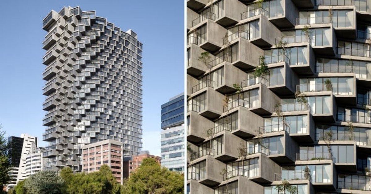The design of IQON is characterized by its minimalistic exterior, featuring raw, exposed concrete that serves as both the structure and aesthetic of the building. The building is composed of individual "pixels" stacked 32 floors high, strategically angled to offer optimal views and terraces for the apartments. The building also incorporates greenery throughout, in celebration of Ecuador's diverse plant life and temperate climate - as the country boasts the highest number of plant species per square meter in the world.