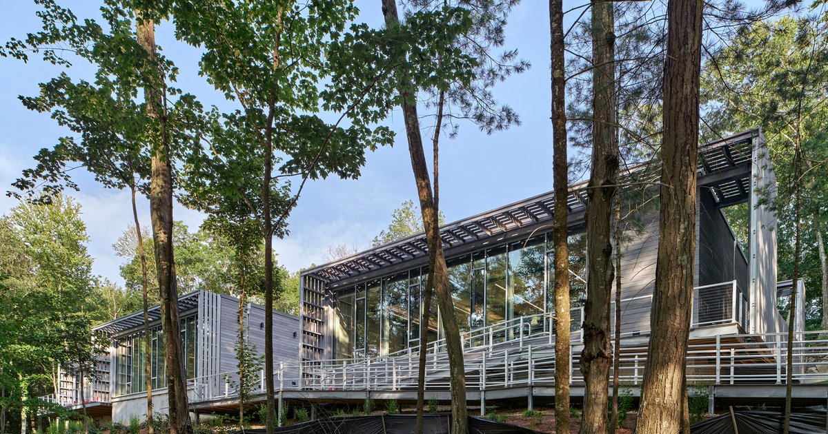 One of the project’s defining features is its inclusive approach to environmental access. A 500-foot elevated ramp winds through the woods, creating an immersive entry sequence that welcomes visitors of all ages and abilities. This low-impact structure allows users to engage with the natural landscape without disturbing sensitive habitats.