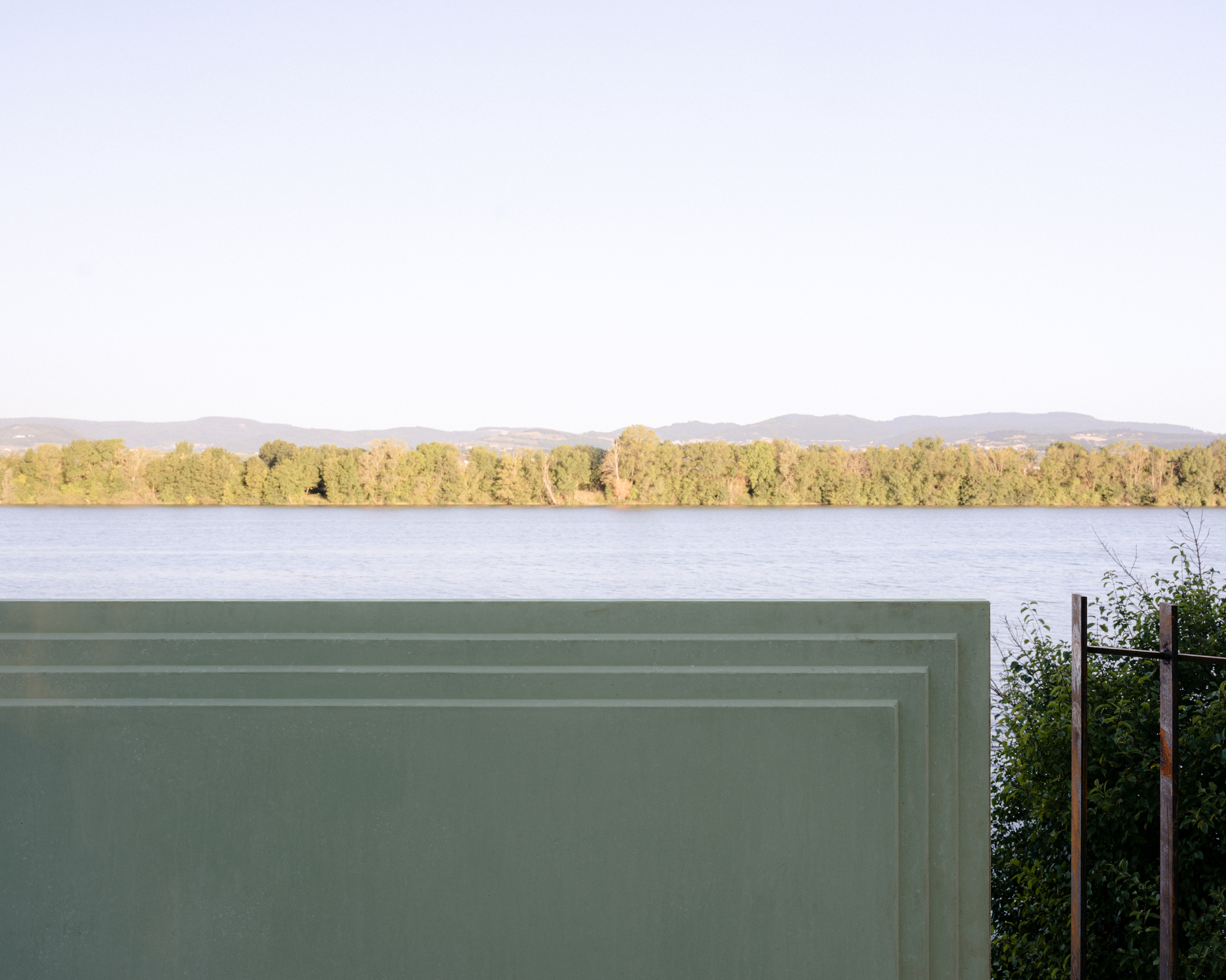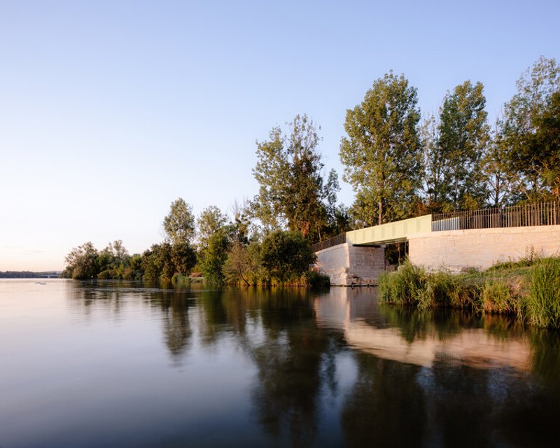 The handrail design extends the bridge’s thoughtful precision. Curving seamlessly at the ends, it connects with vertical weathering steel guardrails that continue the linear rhythm of the Saône riverside promenade. This gesture links the bridge visually and physically to the château parkand beyond, ensuring a continuous and cohesive public journey.