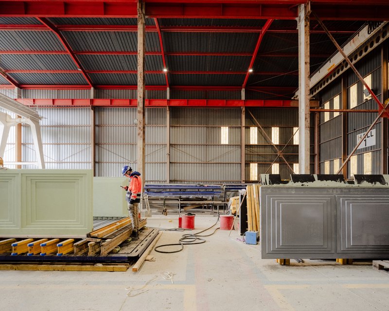 The integration of structure, texture, and color was achieved without additional surface treatments. The pigmented concrete reveals the fineness of its casting, celebrating the craft of form and the language of fabrication.