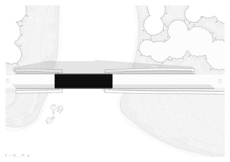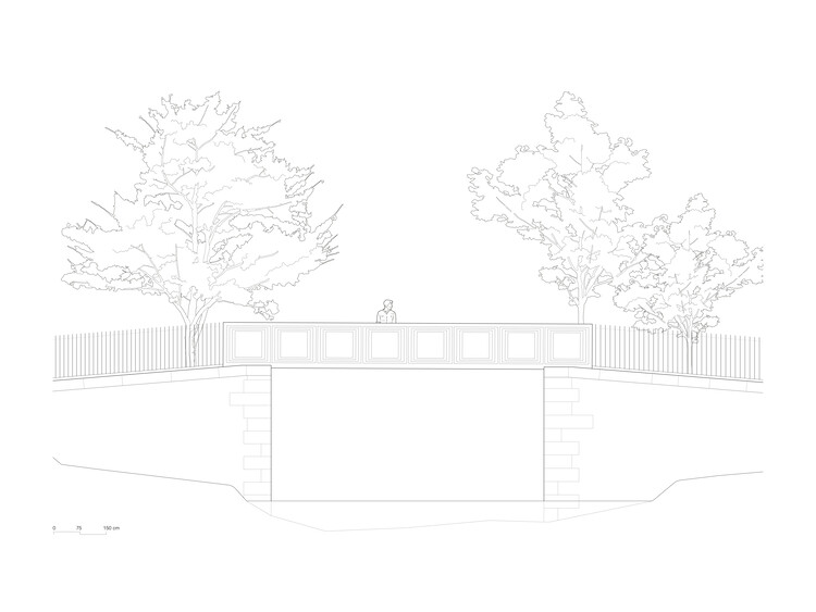 The project takes place at the Bois Canal crossing, where early 20th-century masonry abutments mark an age of craftsmanship in regional construction. Rather than replacing these structures, Oatmeal Studio sought to preserve and integrate them, ensuring the continuity of both place and narrative.