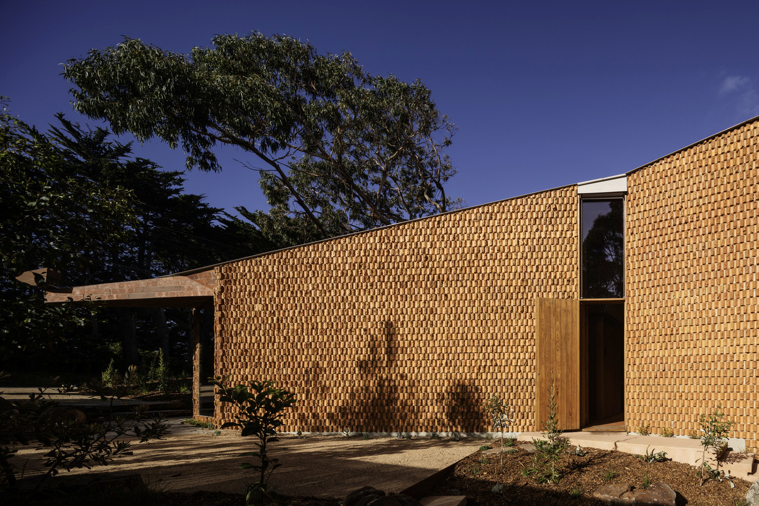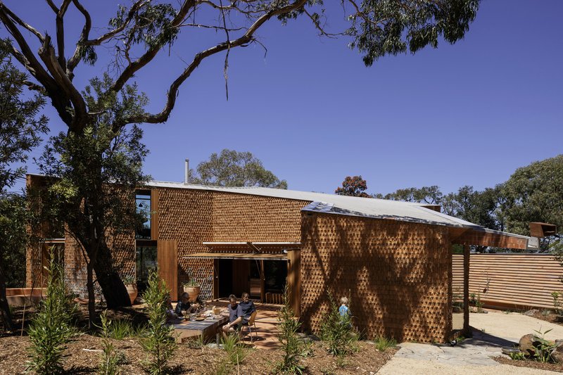 A sustainable beach house in Australia that integrates custom terracotta, recycled timber, and passive design for an energy-efficient coastal retreat.