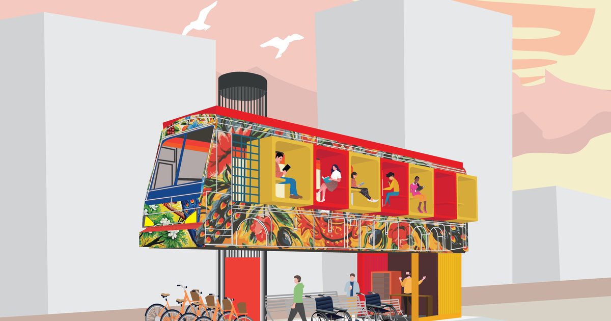 A national study in 2017 found that, numerous old and unfit buses are repaired and colored to ply around the highways of Bangladesh posing risk of serious accidents. Disgusting smoke emitted from such vehicles also adds to environment pollution and poses health hazards. Initiatives have been taken to prevent the movement of unfit vehicles by BRTA (Bangladesh Road Transport Corporation). However, it is not possible to seize all unfit buses due to lack of adequate places to keep those. What if we reuse these old buses as building material for the bus stops? It will not only solve the problem, but also will encourage people to reuse available resources in an environment friendly way.