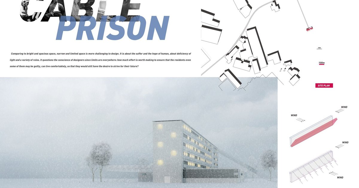 Designed by Suqi Huang, "Cable Prison" is a shortlisted entry of the Switching Prisons competition, proposing a transformative approach to prison architecture through modular, environmentally friendly design. Rooted in a rethinking of incarceration, the project aims to deliver secure yet rehabilitative environments by blending low-cost strategies with spatial transparency and programmatic flexibility.