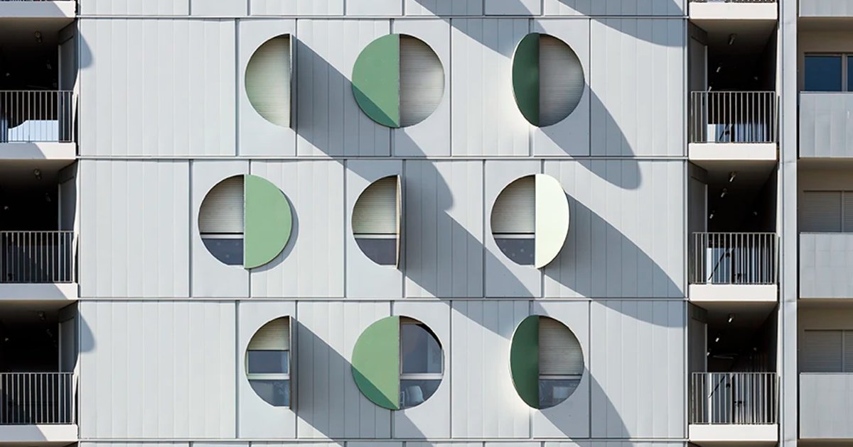 There are two types of facades on this building - one made of luminous and clear metallic sheets, and the other made of dark and opaque metallic sheets. The former is for the "daily rooms" like the living room and kitchen, while the latter is for the "nightly rooms" like the bedrooms. Each window is arranged in a way that allows for privacy while still letting in natural light. At the heart of the island, the block is a private garden, which serves as a peaceful oasis for the inhabitants.