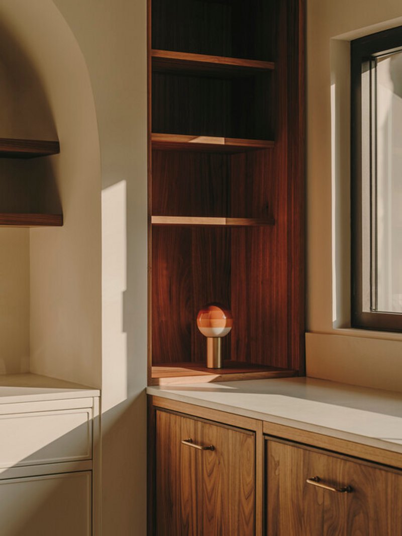 At the center of the house lies its emotional and functional core: a large walnut kitchen. More than a place for cooking, this space acts as the true gathering point of family life.