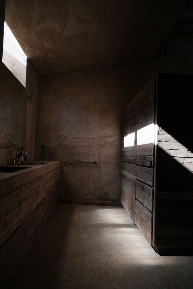 One of the most compelling aspects of Casa Uno is its use of pigmented concrete, tinted to match the natural tones of the surrounding soil. Poured into wooden molds, the walls bear a polished, undulating texture—recalling weathered granite shaped by wind and time. Plastic sheeting used during molding serves dual purposes: first as a waterproofing agent, and later as insulation for the retaining walls. Even the wooden molds find a second life, repurposed as carpentry elements within the home—underscoring a design ethos rooted in circularity, reduction of waste, and material storytelling.