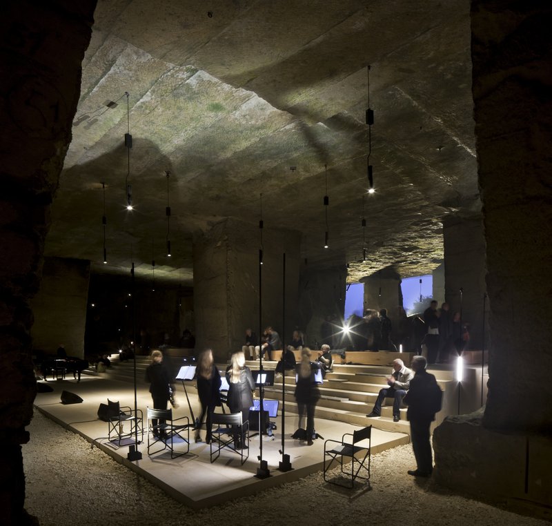 Recognizing the extraordinary qualities of the quarry, the Morseletto family, renowned producers of traditional Venetian stone and marble, had occasionally hosted informal events in the caves. Their collaboration with David Chipperfield Architects evolved into a permanent transformation—preserving the raw power of the quarry while introducing a refined performance infrastructure.