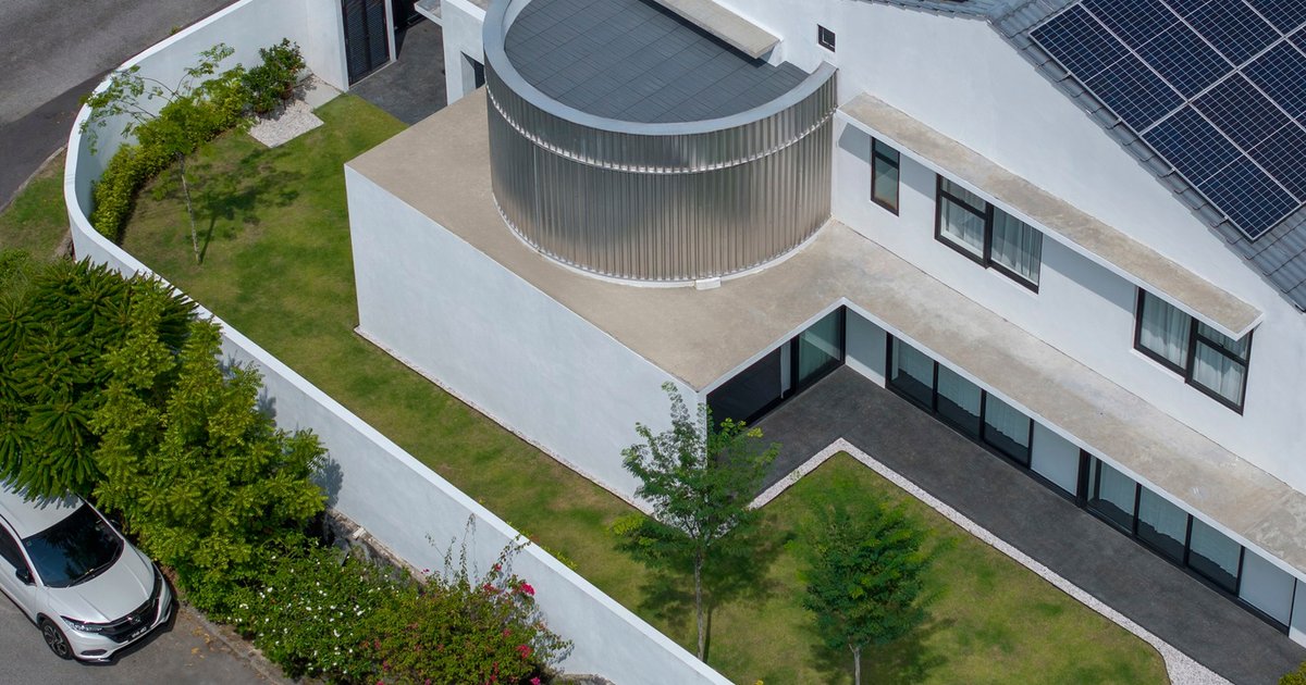 A hallmark feature of CC House is the pair of semi-circular "moon doors" on the first floor, crafted from corrugated galvanized metal. These pivoting doors, operated by a custom lever, allow for controlled light and ventilation, providing flexibility in how much of the interior is visible from the outside. When fully opened, the ground floor is bathed in natural light, while the family room above retains privacy—a thoughtful touch that highlights Fabian Tan's meticulous design.