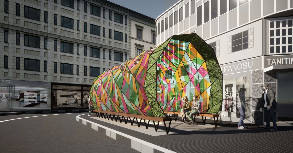 The primary objective of the urban installation is to captivate pedestrians and encourage them to break away from their screens, thus encouraging social interaction and a deeper connection to their surroundings. By incorporating vibrant, colorful glass panels, the installation casts an enchanting array of lights on the walkway as sunlight passes through them. This visual spectacle sparks curiosity and wonder among pedestrians, enticing them to engage with the artwork. As individuals traverse through the installation, the play of light and colors creates a captivating journey, offering a unique and memorable experience that encourages them to linger and interact with others.