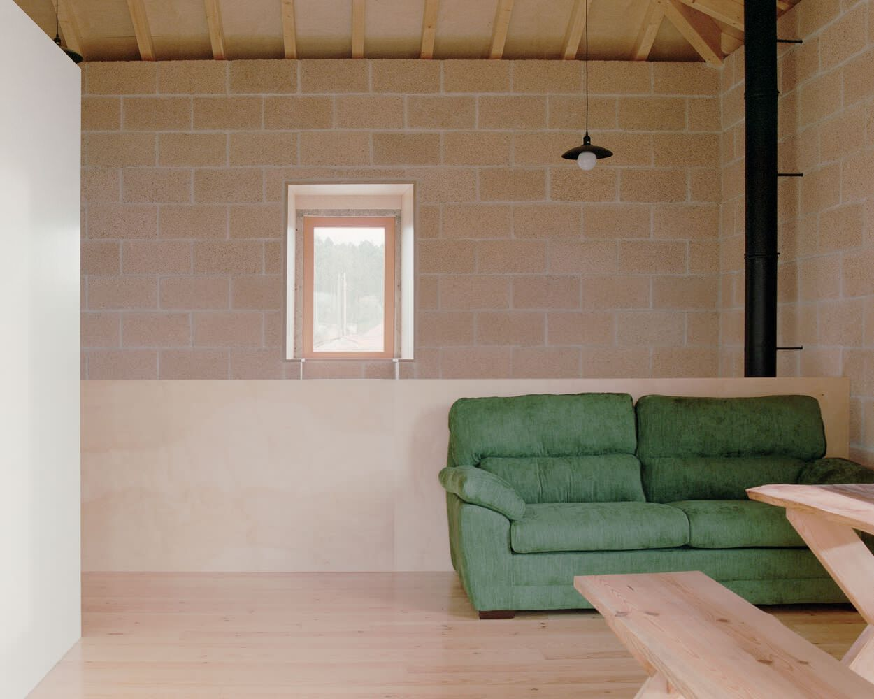 One of the most striking features of the renovation is the use of hemp concrete blocks for interior walls. These blocks provide excellent thermal insulation and acoustic comfort, reducing energy consumption and improving indoor environmental quality. Initially intended to be plastered over, the exposed hemp brick texture became a central design feature, emphasizing the material’s natural beauty and sustainability.