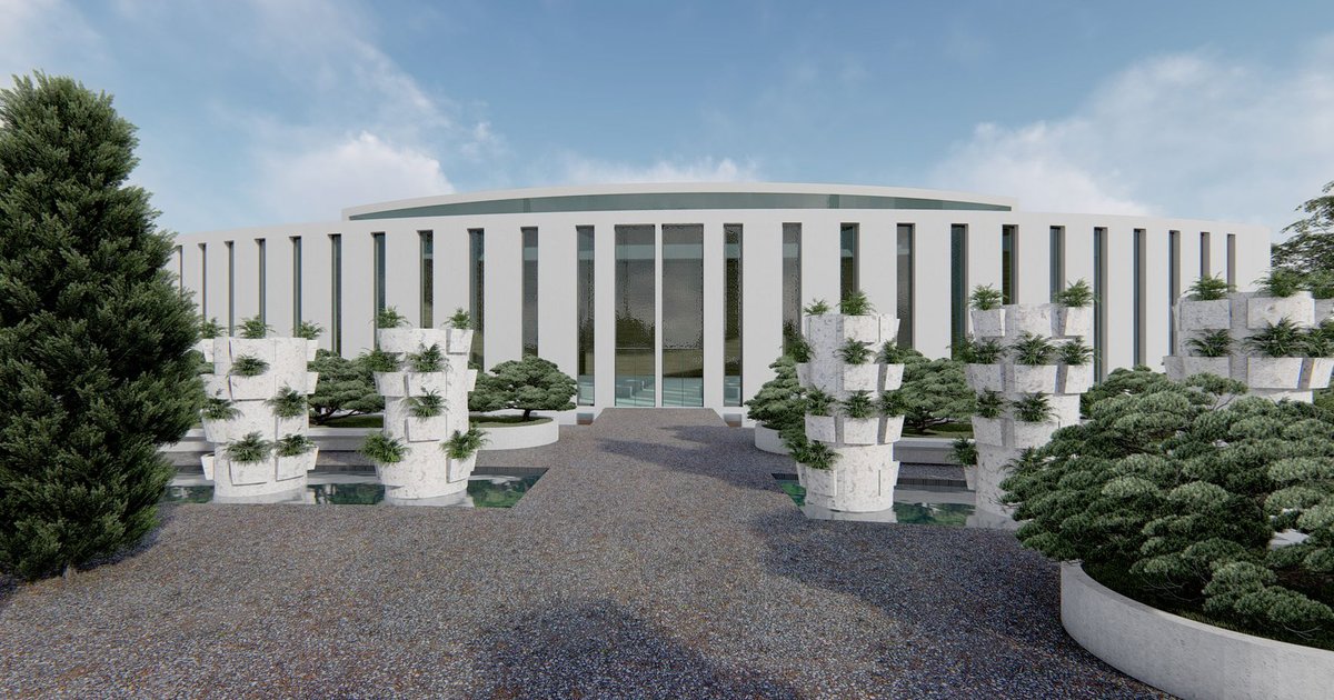 A symbolic touch permeates the masterplan: the curved form of the main building mimics a drop of water, signaling the beginning of life and the flow of continuity. The underground parking, covered with green alleys, preserves surface land while ensuring seamless access.