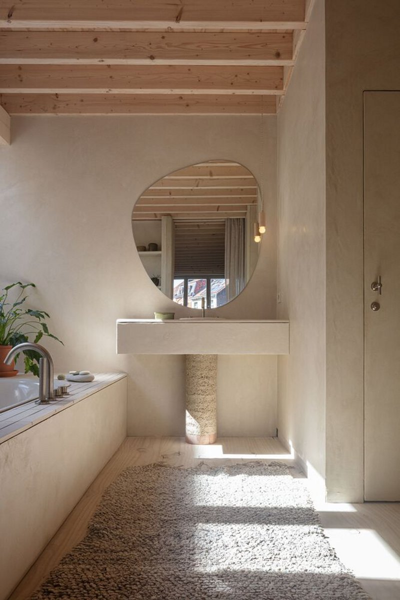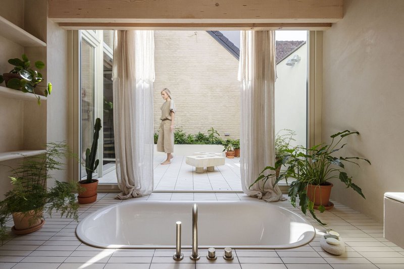 Throughout the renovation, existing elements—such as floors, windows, staircases, and tiles—have been preserved, reused, or supplemented with reclaimed materials. This low-tech, high-intention material palette exemplifies a back-to-basics approach that proves bio-based architecture is equally viable in dense urban contexts—not just in rural or experimental settings.