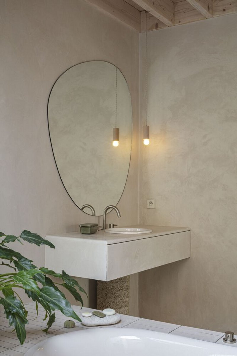 The design champions functional flexibility, allowing the space to transform over time. The coworking area on the ground floor can later serve as a showroom for Tenue de Ville, the textile design studio associated with the site. Similarly, the small studios can be absorbed into the main family dwelling as life circumstances change.