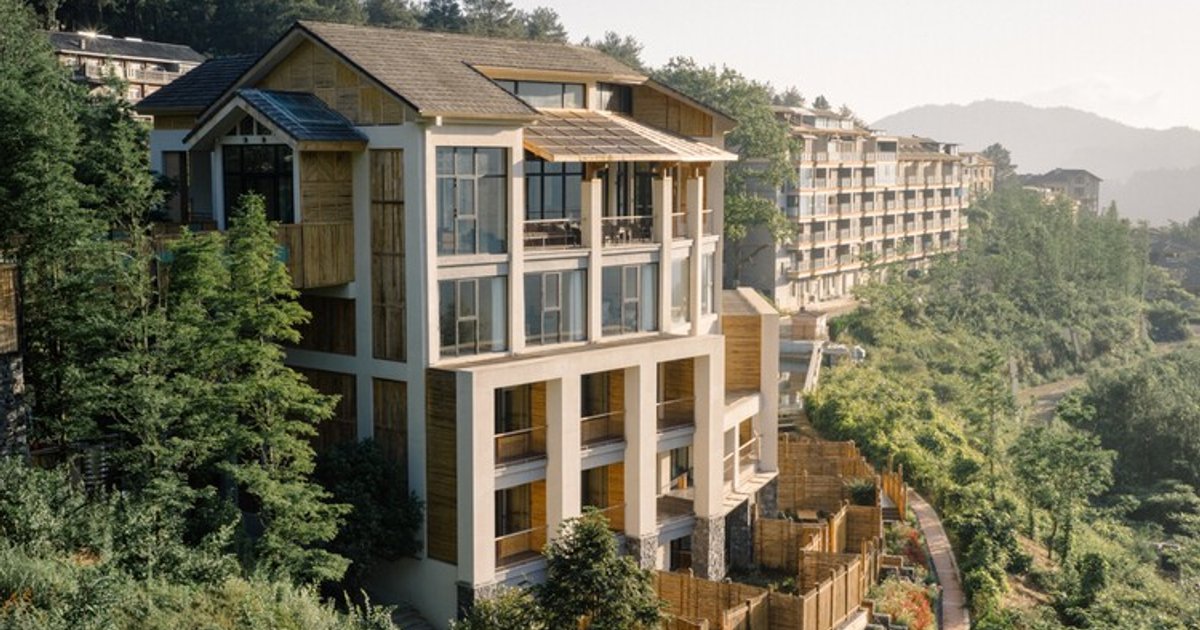 Surrounded by dense forests and steep terrain, the site offers expansive mountain views but presents challenges in accessibility and construction. Rather than imposing a new architectural language, the design team undertook extensive field research into local villages, materials, and craftsmanship, allowing the architecture to emerge from the mountain’s ecological and cultural fabric. The result is a hotel that seamlessly integrates architecture, landscape, and community, turning natural textures and human traces into a cohesive spatial narrative.