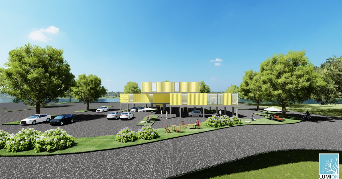 Containers themselves have durability and spatiality, but are mostly used for the transportation of cargo, and are subsequently a nuisance to waste. Parking lots are essential spaces in the city, but they are spaces for cars and have low utilization. Such neglected or abandoned containers are reborn as spaces for people, combined with parking lots used as spaces for cars, not people.