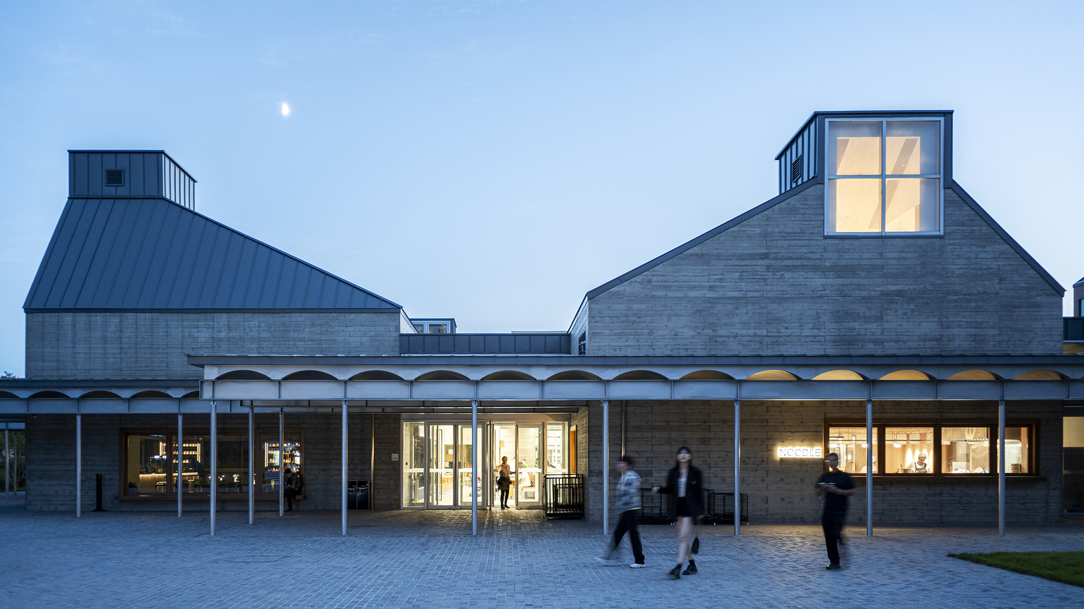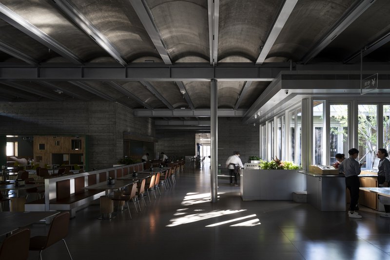 The marketplace employs a dual construction system: concrete shear wall units for distinct shops and a steel frame structure for public plazas and peripheral galleries. This approach not only differentiates the spaces functionally but also highlights sustainable building practices.
