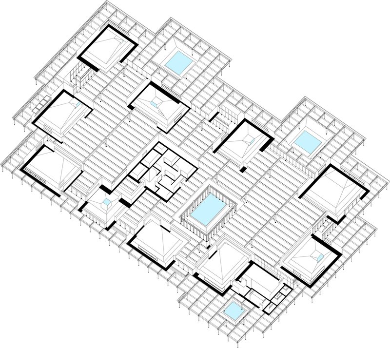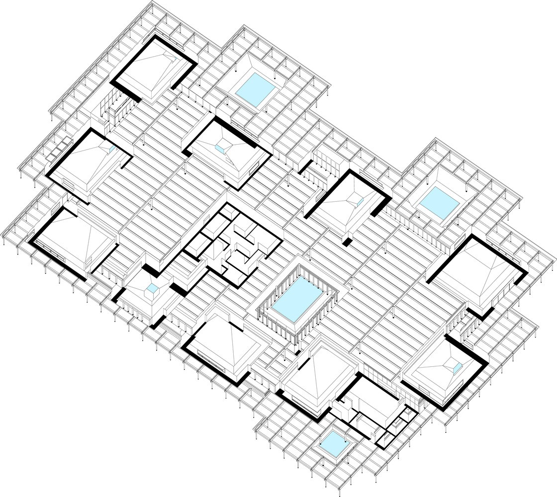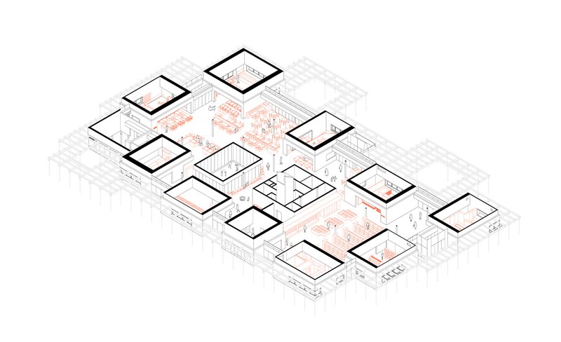 The marketplace is envisioned as a miniature urban center, fostering community interaction and economic activity. It serves as a cultural and social hub, where the architecture itself facilitates community bonding and engagement.