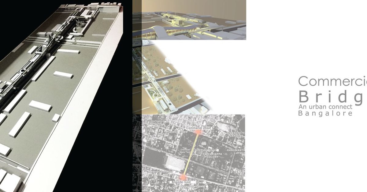 Contemporary cities increasingly struggle with fragmented urban fabrics, where infrastructure prioritizes vehicles while pedestrian life is pushed into isolated pockets. Commercial Bridge – An Urban Connect, a thesis project by Aafreen Fatima, addresses this challenge through the lens of urban bridge architecture, proposing a bridge not merely as infrastructure, but as an active, inhabitable public realm that stitches together two of Bangalore’s most vital commercial corridors—Commercial Street and Brigade Road.