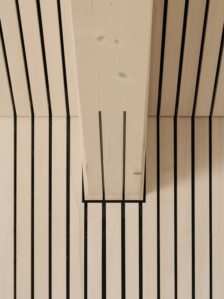 To make this possible, the architects employed engineered trusses that span the width of the existing structure. These trusses not only enable the new attic-level program but also become expressive interior elements, revealing the construction logic and adding material warmth to the spaces within.