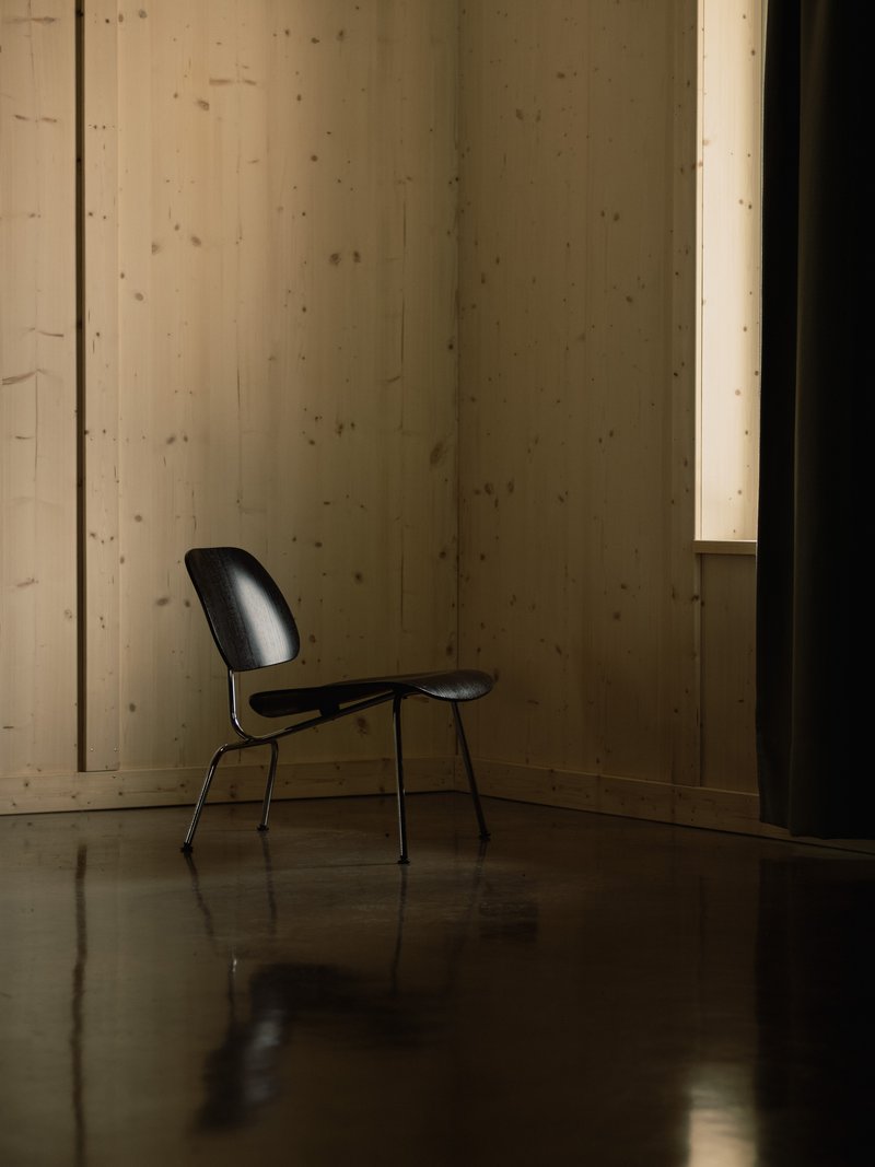 Inside, polished exposed concrete floors mixed with dark local sand complement the visible timber structure, which is protected with a clear coating to retain the natural material expression. Windows feature highly insulated timber frames with triple glazing, maintaining comfort and energy efficiency.