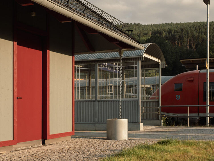 The project was conceived as a small replacement building for the local community, positioned within the eastern extension of the listed station ensemble. Supported by IBA Thüringen, the design seeks to blend simplicity, familiarity, and local identity while providing a neutral, public space accessible to residents. The architectural form—a straight, rectangular building with a pitched roof—draws inspiration from typical Thuringian Forest building types, maintaining harmony with the surrounding historic structures.