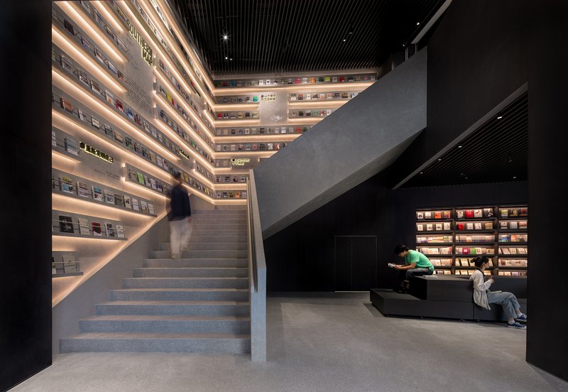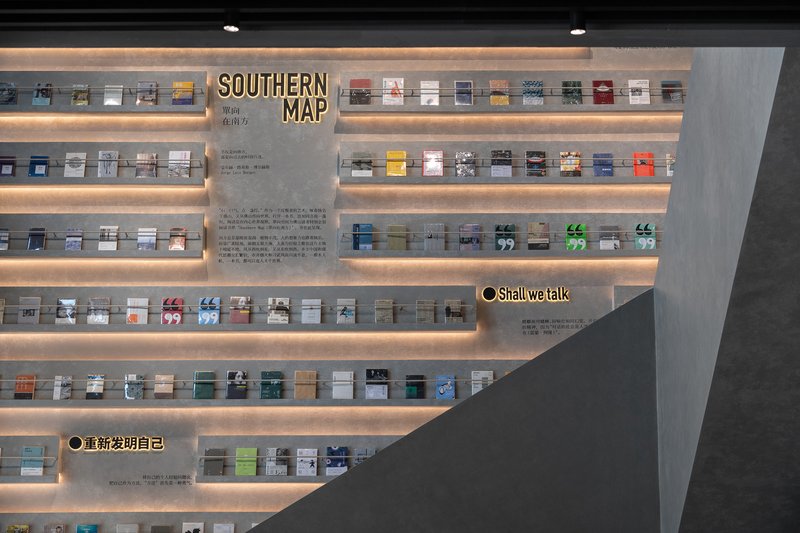 The interior's deepest section boasts an atrium connecting the first and second floors, featuring sculptural stairs and a literary map titled "SOUTHERN MAP." This unique design collaboration with the OWSPACE team aims to convey an immersive literary experience, inviting patrons to explore the world "between the lines." The ground floor, designated as an event space, exhibits flexibility with movable exhibition stands and the capacity to transform into a lecture hall accommodating up to 100 people.