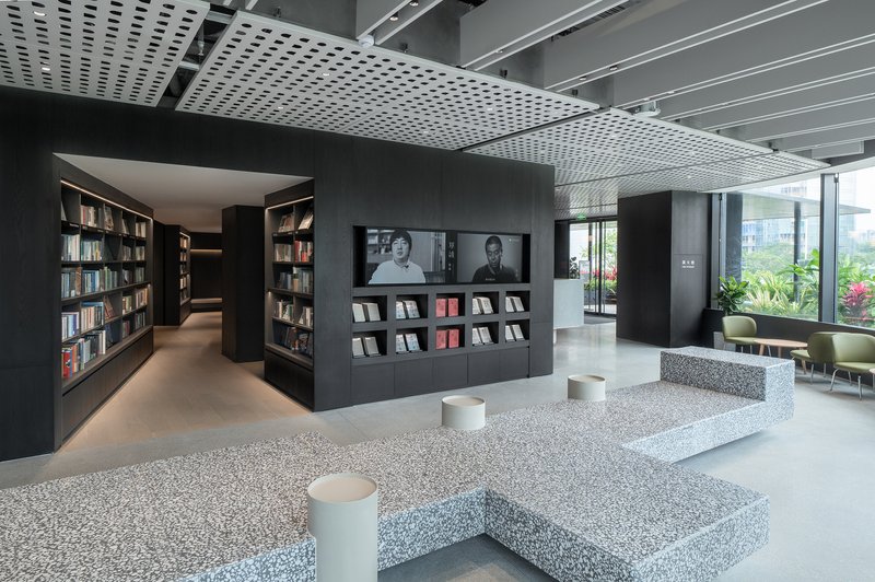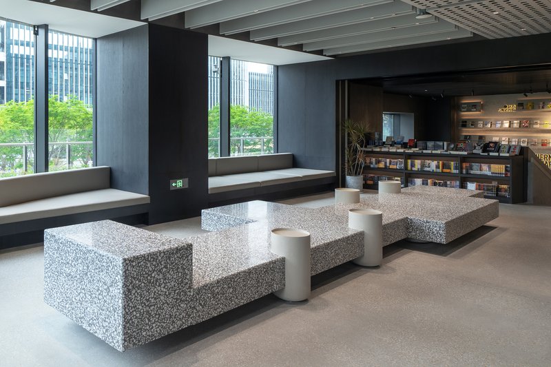 At the heart of the design lies the concept of "Monsters of Wisdom," five distinctive pieces of large-scale furniture strategically placed throughout OWSPACE. These include a remarkable 7-meter-long display table for books and goods, as well as a spacious bench capable of accommodating up to 20 people simultaneously. The furniture's stubby steel legs provide an animated appearance, resembling creatures ready to embark on a journey. Referred to as "Monsters of Wisdom," these pieces add an element of playfulness and curiosity to the OWSPACE, engaging visitors with their unique design.