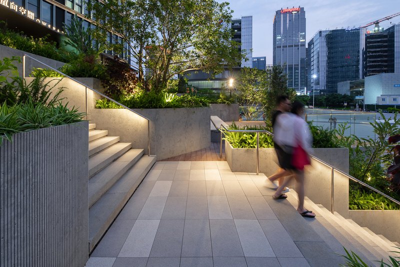 The transformation of an existing outdoor ramp into a terrace-style community garden showcases 11ARCHITECTURE's commitment to maximizing minimal spaces. This carefully designed garden offers a serene walking destination, considering factors such as space size, scenic views, material textures, and lighting effects. Complete with a stage for small events and comfortable seating arrangements, the upper deck features outdoor bamboo panels, creating a perfect spot for relaxation, stargazing, or social gatherings. The surrounding greenery enhances the southern region's aesthetic, creating a harmonious blend with prefabricated cement boards.