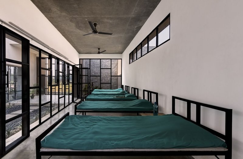 Sustainability is central to the Compos Mentis philosophy. The facility employs passive solar strategies suitable for Ranchi’s hot-dry climate. Material sourcing within a 160-kilometer radius reduces embodied energy, while courtyard ventilation, light wells, and shading minimize artificial cooling and lighting needs. The building’s design also reduces thermal gain by strategically placing staircases, passages, and service areas as solar buffers.